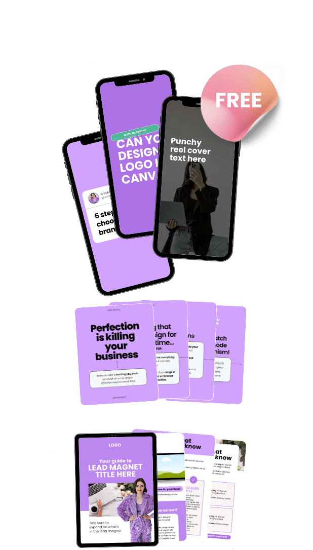 Get the exact Reel Covers, Carousel Posts, and Lead Magnet Designs that have helped online business owners stand out, attract more clients, and grow to $100k+ faster—without wasting hours in Canva!